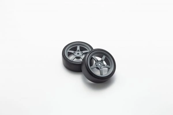 Hard plastic drift tires realizes controllable sliding performance, and equipped with white 5-spoke wheels on K mark logo to improve appearance.