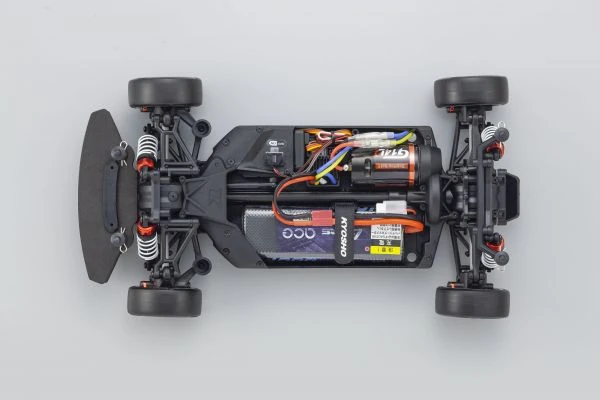 For the pure enjoyment of R/C car driving, the combination of a beautifully reproduced car body with the FAZER series chassis can’t be beaten. Kyosho has taken its standard touring car chassis and given it a full model makeover that has evolved performance to a new level. A simplified design with fewer parts has improved maintenance efficiency and reduced weight while core strength and rigidity has been increased through new materials and ribbing and stiffeners on front and rear. In addition, the symmetrical chassis design synergizes excellent front-rear balance through the suspension with responsive control, irrespective of power source. Featuring slipper clutch, front & rear gear differentials, oil shocks and full ball bearing specs, the high durability and impact resistance allows drivers to unleash the full potential of the chassis. Brake disc wheel hubs with two different offsets (0mm, +5mm) provide compatibility with 190mm and 200mm width body styles and allows the wheelbase to be adjusted to 274mm by replacing some parts (sold separately) for compatibility with other 1/10 scale body styles, in addition the body included. The Readyset package comes fully assembled and includes everything except charger and battery for the chassis, and batteries for the transmitter.