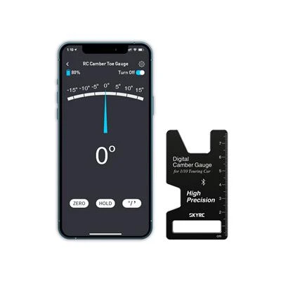SkyRC CTG-015 Digital Camber Gauge is built with Bluetooth 5.0, which enables a faster and more stable connection. The app instantly displays real-time data once connected.